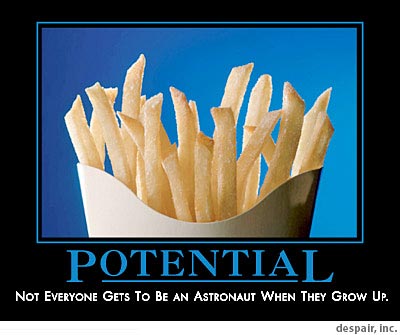 Has everyone told you that you have potential? If so, it’s possible you could move ahead in that area but you may not. It remains to be seen. I won’t bet on it unless I am willing to take a risk. There are some things worth betting on. There are other things that are just to precious to risk a bet.